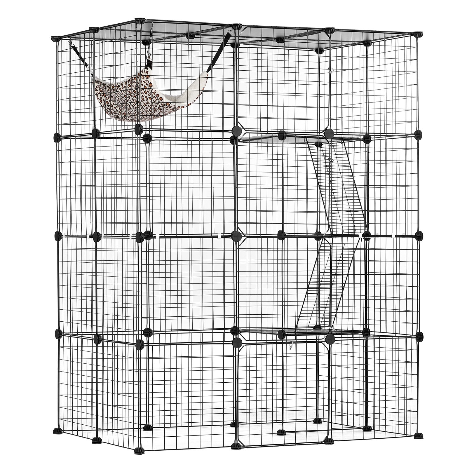 *Durable Iron Material*:Made of thickened iron pipes,our cat cage has excellent durability and stability. Rounded plastic buckles is safe,protect your hands from scratching and ensure your cats’ safety. This cage has long lasting service life and can accompany your cat from kitten to senior.