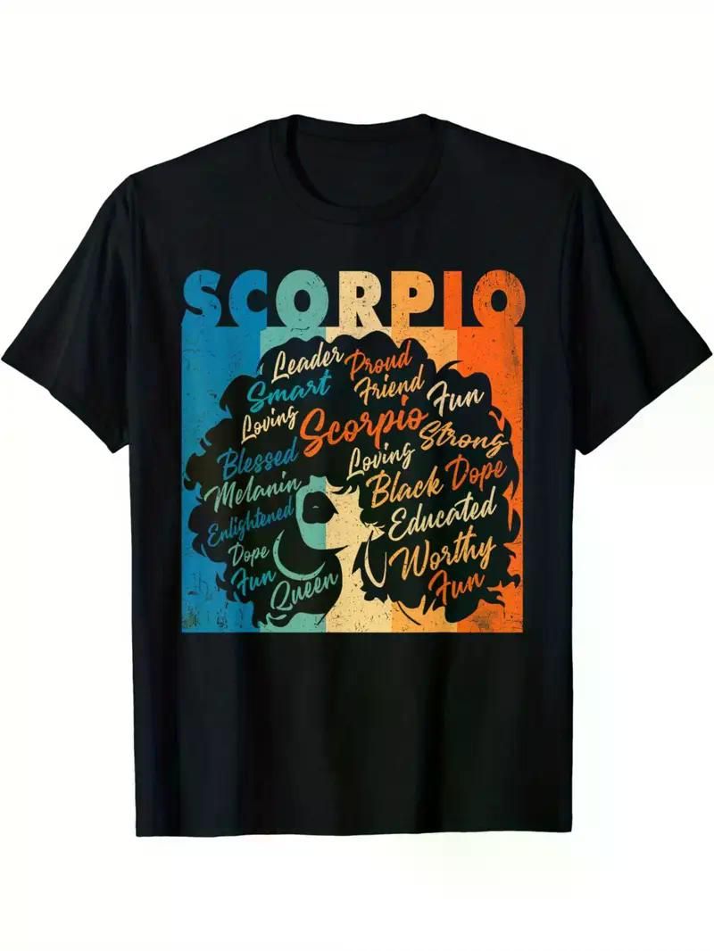 African American Women Zodiac Birthday Scorpio Girl T-Shirt, Women’s Clothing loose clothes Comfort pure cotton