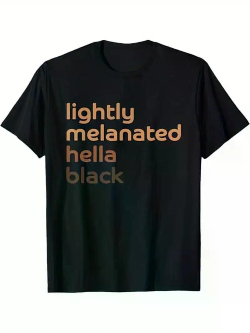 Lightly Melanated Hella Black African American Melanin T-Shirt, 100% Cotton, Halloween Thanksgiving Christmas Gift