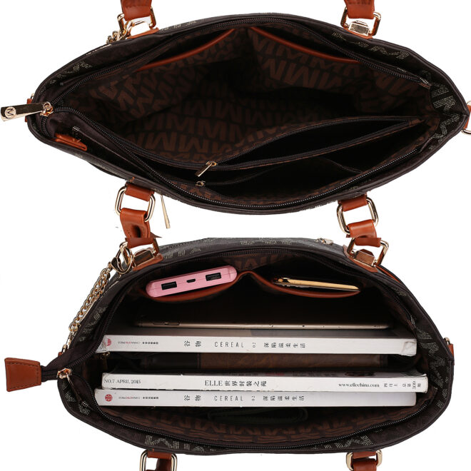 POCKETS: Interior features a spacious compartment including a mid-center zipper pocket, two slip pockets, and a wall zipper pocket