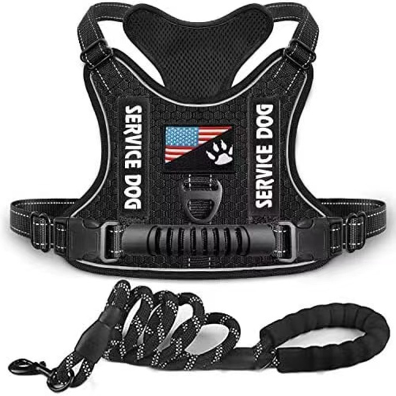 Pet Harness And Leash Set For Dog & Cat; Adjustable No Pull Service Dog Vest Harness For Walking