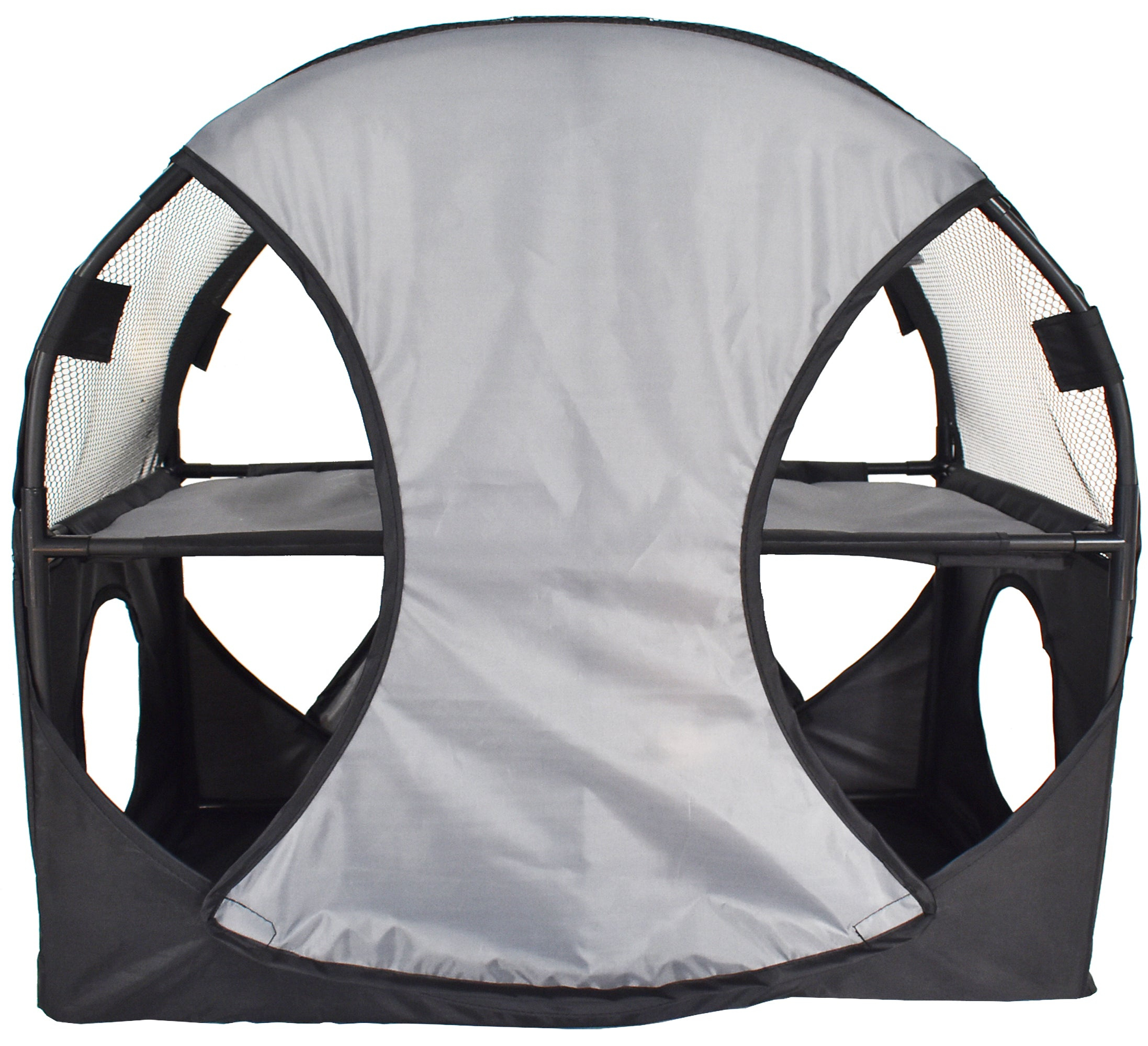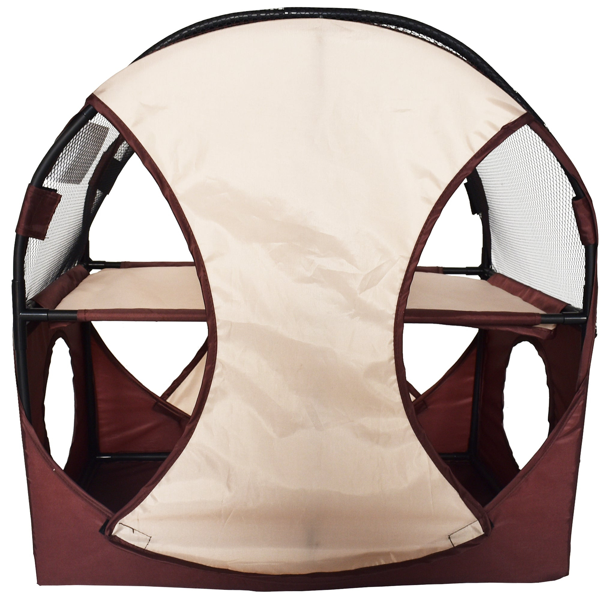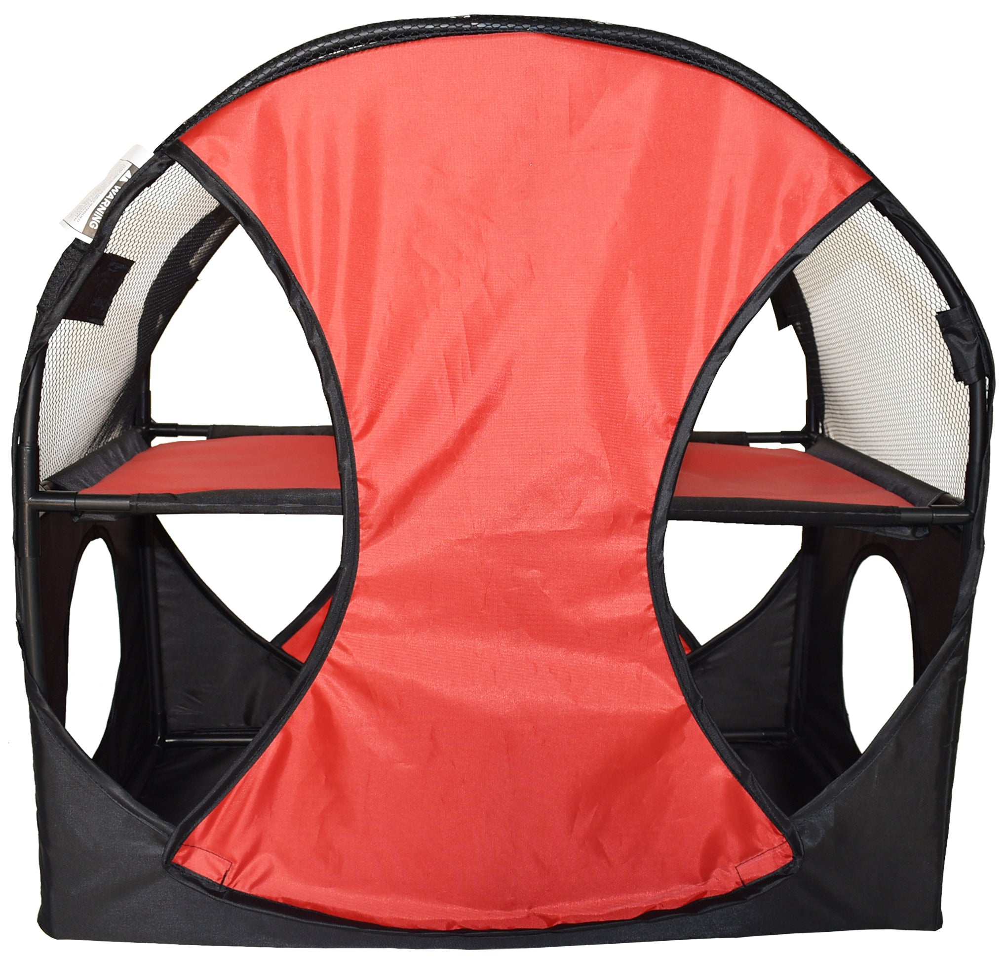 The Pet Life Kitty-Play Obstacle Travel Collapsible Soft Folding Pet Cat House is constructed with durable PU coated polyester and mesh netting all around for breathability and framed with lightweight poles for added durability. The Kitty-Play Cat House features pass-through entrances at the bottom with dual mezzanine holes for climb through passage. Easy to install and setup. Great for interactive fun and brain activity development. Heavy enough to hold over 120 lbs. of weight, and light and small enough to travel and setup. Easier for storage and a simpler alternative to those bulkier conventional heavier cat houses. Features multiple tunnels located at the interior making it great for multiple cats. Available in multiple colors.