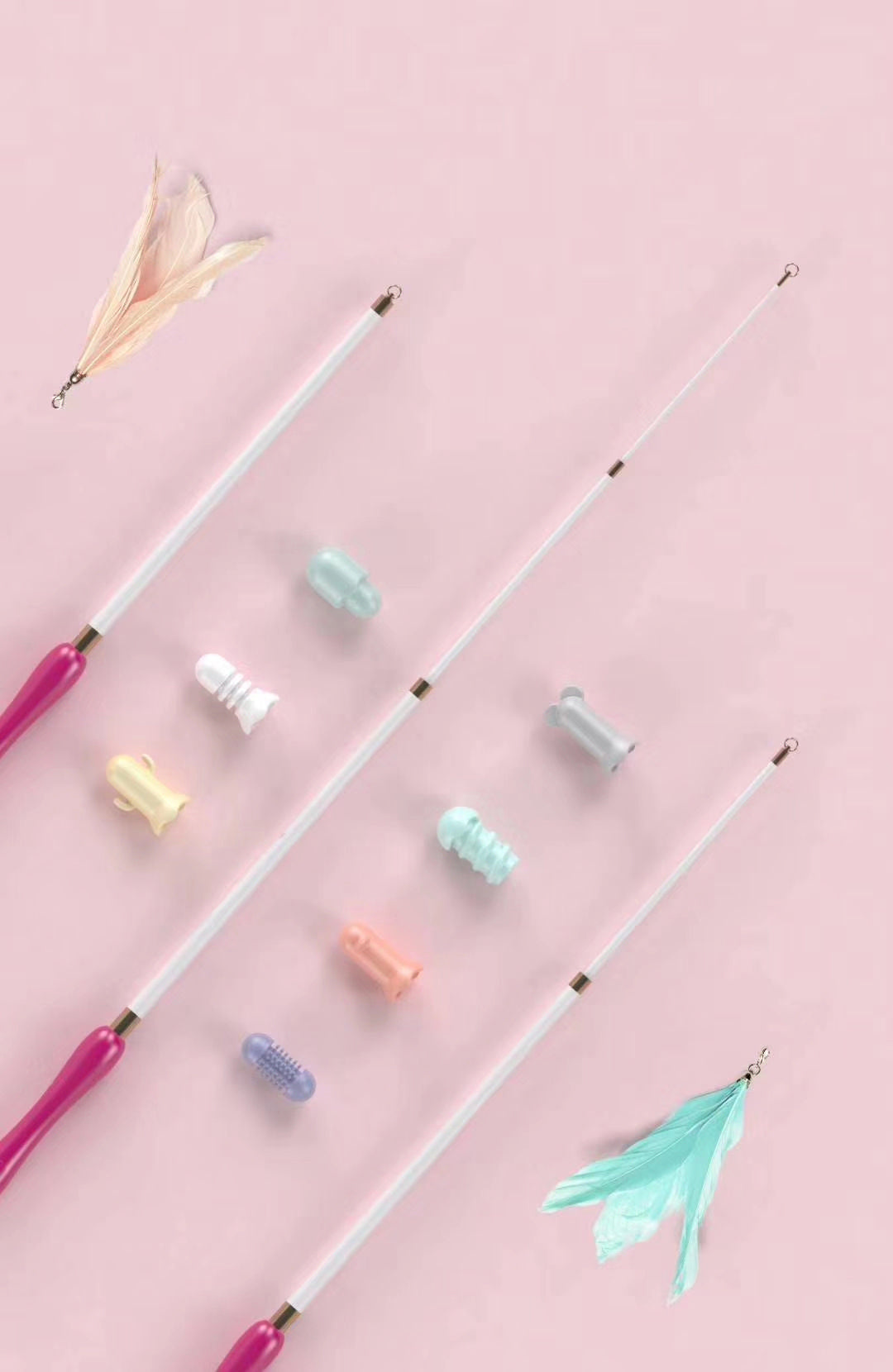 1.This Amazing Cat Teaser Includes 3 Feathers and a 7 Piece Attachment Piece with a Built-in Low-Frequency laser pointer for complete teasing fun